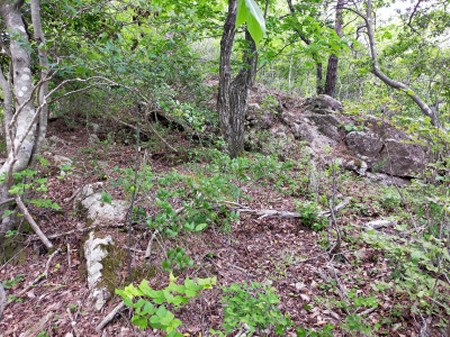 ・「高野の鏡岩」から尾根伝いに登ると、一気に展望が開ける場所が一箇所ある。