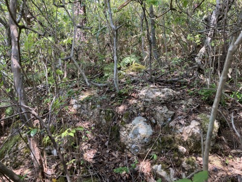 ・工事用道路の途中に小さな階段があり、奥宮から下るとこの階段に出る。これが奥宮跡への参道だったのであろう。