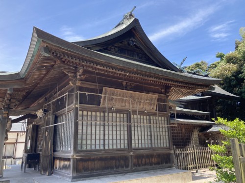 元社として、旧社家であった賣豆紀氏という個人宅の庭に祠がある。二軒北の同族の家にあったもののを事情により移したという。