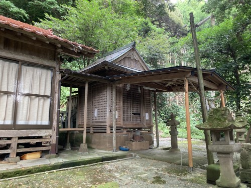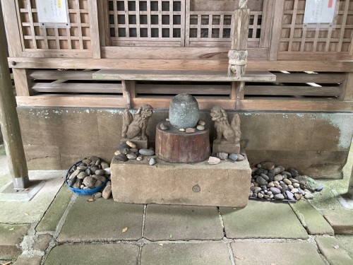 本殿はなく、拝殿奥に御神体として石が置かれており、拝殿前に丸石が置かれている。