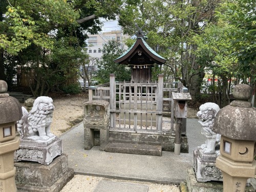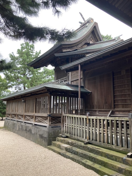 相殿神として五十猛命・大屋津姫命・枛津姫命が祀られているが、この神々は木を植えた神々である。森林は山の幸を育む場所であることから祀られるようになったのであろう。
