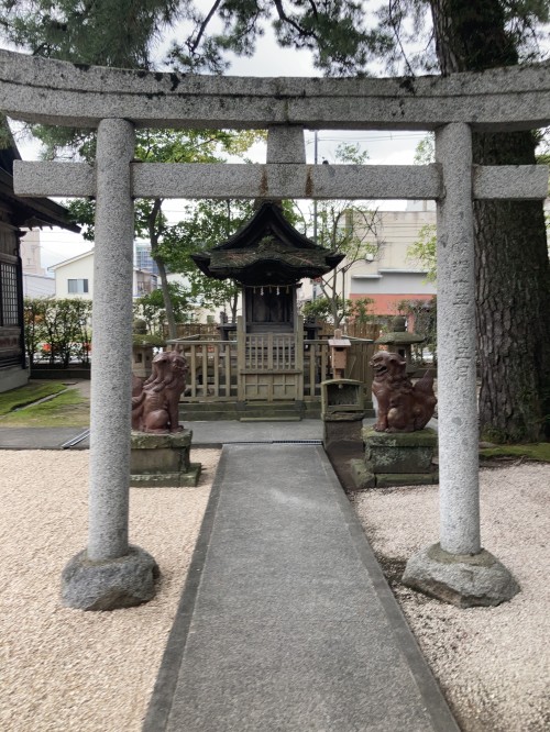 元社地は南西方岩崎鼻(袖師浦)地理院地図であったといい、その後白潟に移り、更に現社地に移った。