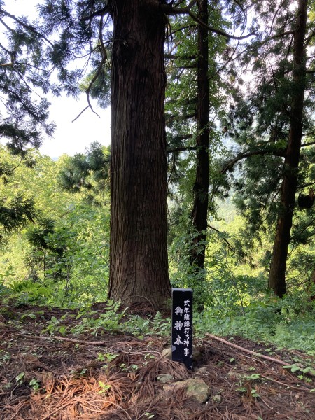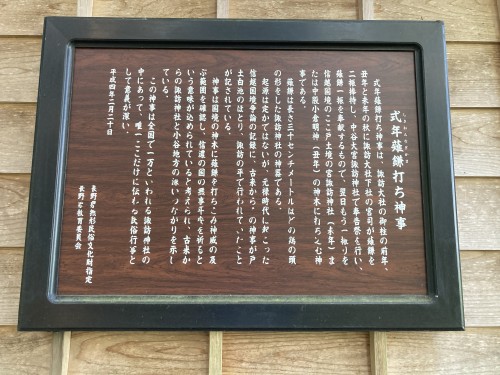 諏訪大社下社の宮司がこの地に来て神木に薙鎌という鉄の神器を打ち込む。