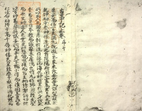 臣安萬侶言 夫 混元既凝 氣象未效 無名無爲 誰知其形 †