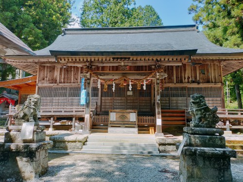 甲斐駒ヶ岳(標高2967m)山頂に社があり地理院地図それを本社とし、ここを前宮と呼んでいる。